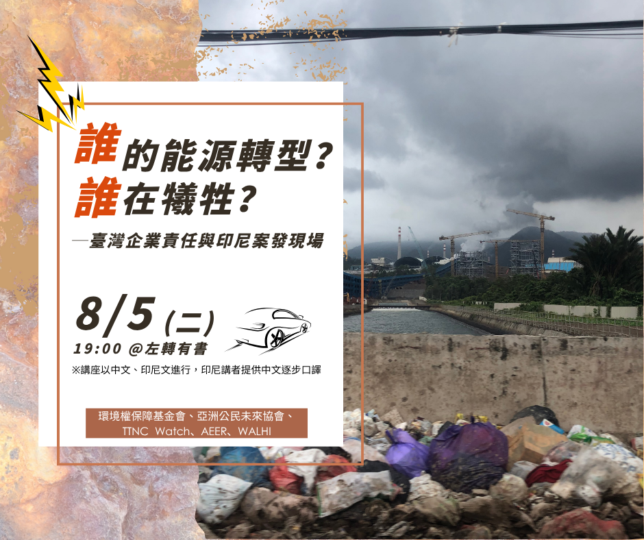 🌐主辦:環境權保障基金會、亞洲公民未來協會、TTNC Watch、AEER、WALHI